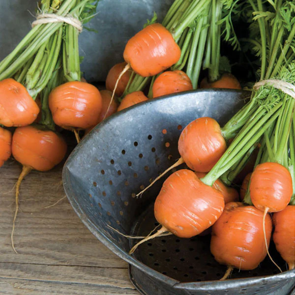 Carrot ‘Paris Market Atlas’ is an improved variety of the 19th century French heirloom, an early Parisian Market-type carrot that feature the traditional globe shape roots. Smooth, round, bite-sized and instantly recognisable, this very flavoursome variety has a deep-crisp refreshing taste. They are ideal for growing in containers and shallow, hard stony soil....even possible to grow them in clay soil!Â