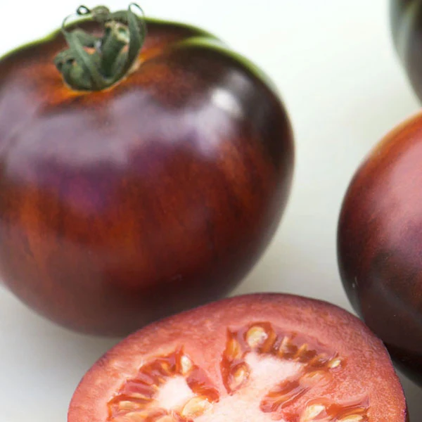 Tomato Indigo Apple's fruit start off purple but will be virtually black when fully ripe, meaning additionally high in antioxidants and must be left on the vine to fully mature to get the best flavour. Only the parts of the fruits that get a lot of sun keep their darker colour even when they have reached the right stage for harvesting. Plants produce 90 - 100gr fruit.